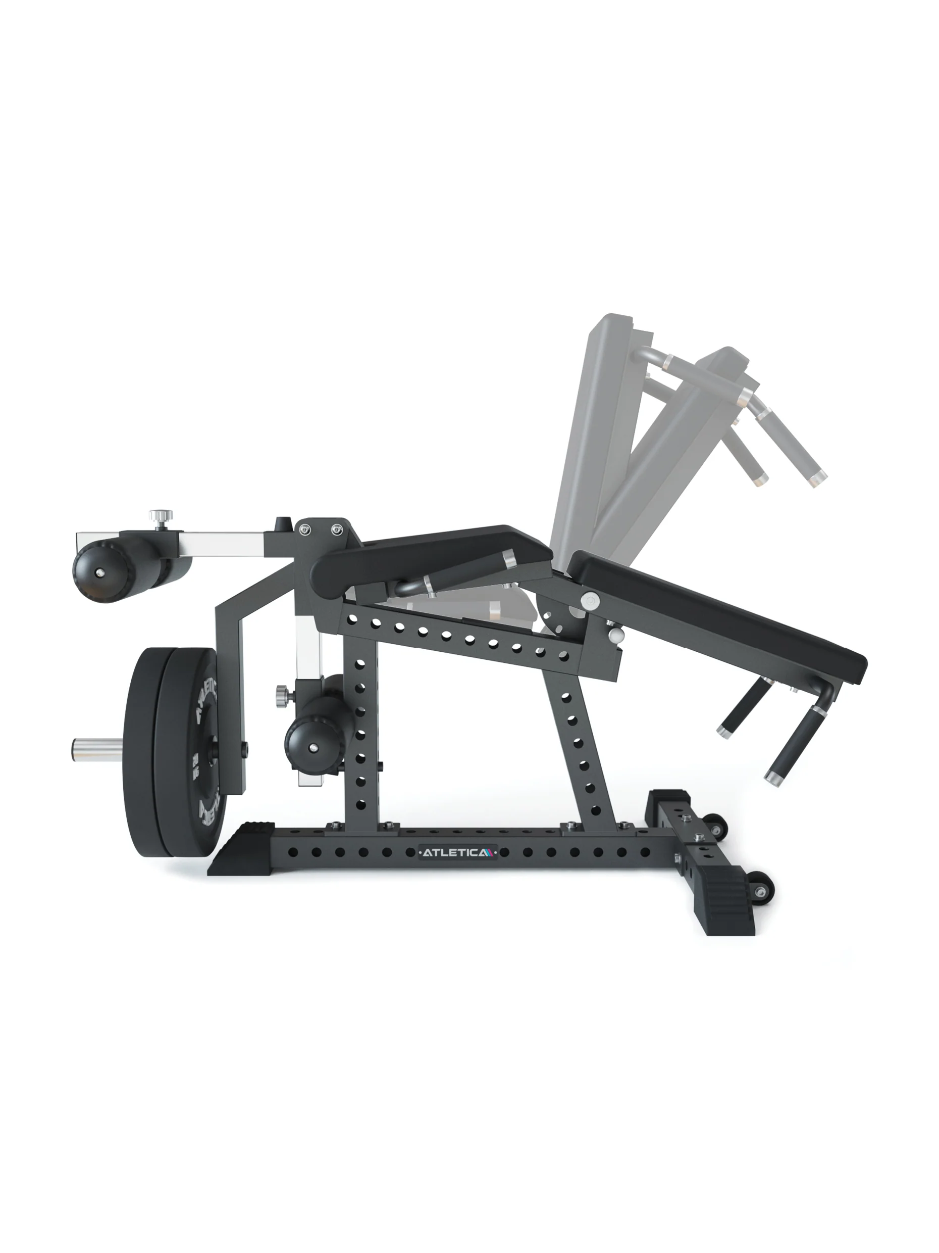 - Beim Beinstrecken ist die Rückenlehne in aufrechter Position, wobei dir zwei verschiedene Einstellwinkel zur Verfügung stehen