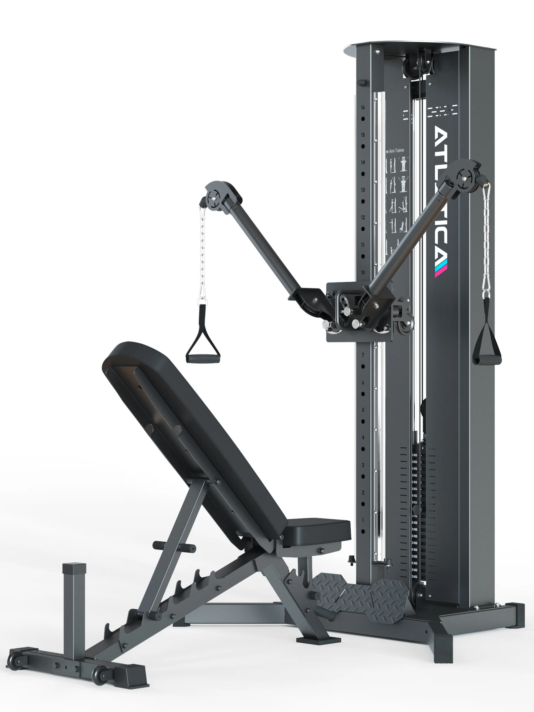 - In Kombination mit den kugelgelagerten, frei drehbaren Seilrollen ergibt dies eine nahezu grenzenlose Bewegungsfreiheit, die Athleten jeder Körpergröße eine Vielzahl an Übungsmöglichkeiten offenbart